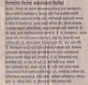 गिरणारे विशेष श्रमसंस्कार शिबिर.