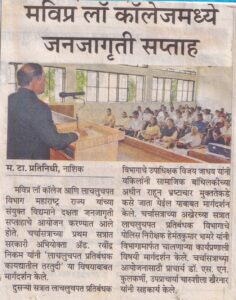 म.वि.प्र.समाज लॉ कॉलेजमध्ये जनजागृती सप्ताह आयोजन करण्यात आले.
