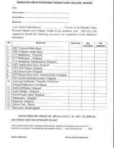 List Of Documents For Admission